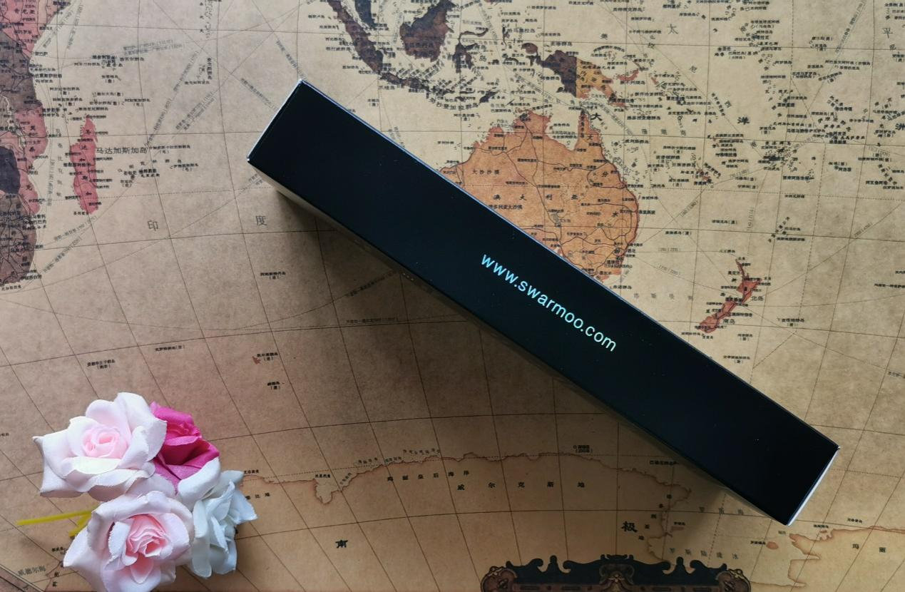 MO 3的包裝沿襲了貝克王子耳機以往的設計風格即以黑色打底,金色或銀色圖文。包裝盒正面右上角是小哞產品LOGO,就像是一個牛頭;正中間是產品名MO 3,下方是英文SWARMOO。