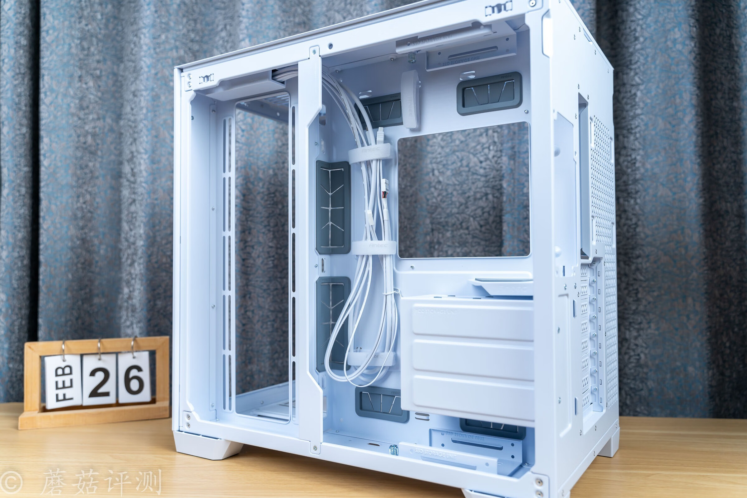 細節部分,機箱主板固定位的四周,走線開口部分均有橡膠套設計;機箱頂部的IO開口部分,均有橡膠塞設計;機箱電源倉的底部,設計有橡膠墊,非常不錯。另外這款機箱有黑色、白色兩款,可以方便搭配白色主題、黑色主題裝機,聽說后續還會有ARGB版本,好奇是什么樣的。
